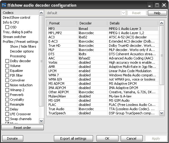 • K-Lite Codec Pack Standard - имеет все для проигрывания большинства файлов мультимедиа. Этот пакет будет достаточным для нужд более опытного пользователя.