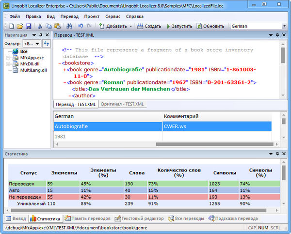 Lingobit Localizer - профессиональный инструмент для локализации приложений, скачав который на cwer.ws, вы сможете легко и эффективно взаимодействовать с переводчиками. Обеспечивает идеальные условия для взаимодействия между менеджером, переводчиками и тестерами. Теперь вам не понадобится исходный код, все технические детали скрыты за простым и интуитивным интерфейсом. В программе имеются эффективные инструменты для контроля качества, повторного использования переводов и управления проектом, которые обеспечивают высокую продуктивность и отличное качество. При выпуске новой версии приложения вам будет необходимо перевести только новые или изменившиеся строки. Остальные переводы будут перенесены в новую версию автоматически. Поддерживает бинарную локализацию Win32/MFC, .NET и Delphi приложений. Таким образом, вам больше не нужно изменять исходный код для перевода приложения.