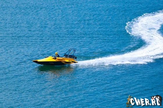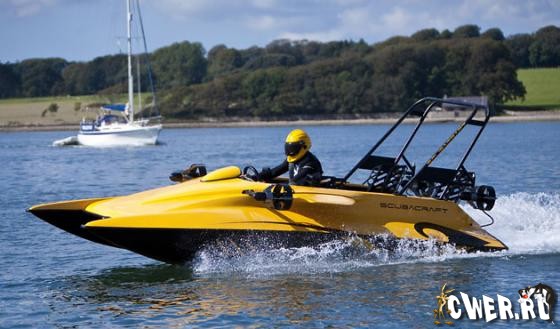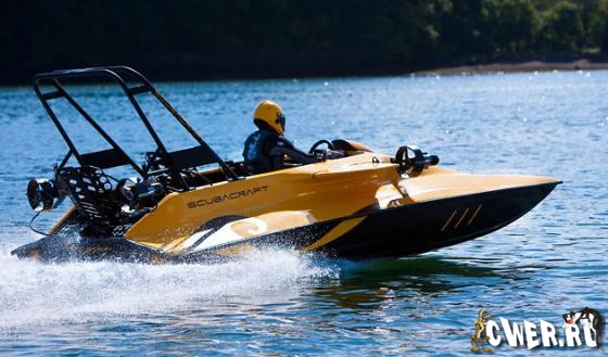 Скорость катера под водой достигает 50 миль в час. Аппарат способен погружаться на глубину до 30 метров.