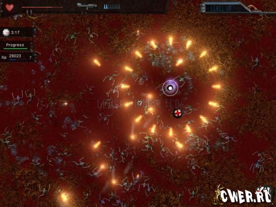 Жестокий шуттер (не рекомендуется детям, хотя и не слишком приближено к реальности). На вас будут нападать толпы различных существ, начиная от зомби и заканчивая пауками. Цель игры - пройти уровень, уничтожив всех монстров.