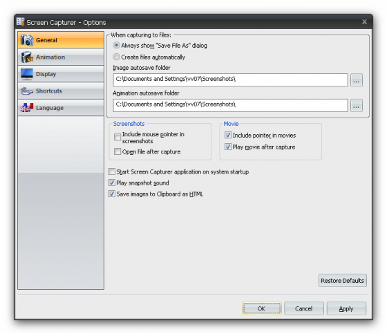 Screen Capturer 1.0.4.42 - простой в использовании скринсэйвер, делает захват, печать и отправку скриншотов. Просто нажмите кнопку "PrtScr" (Print Screen) на клавиатуре и программа спросит, хотите ли вы захватть полный экран, активное окно приложения или область экрана. Выберите нужный режим захвата и нажмите кнопку "Capture"("Захват"), чтобы сохранить скриншот в буфер обмена, в файл или в приложение к электронной почтe.