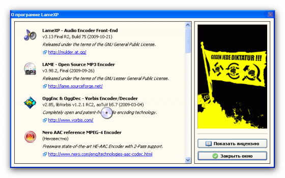 LameXP - это небольшой мощный и простой конвертер аудио файлов, который позволяет производить перевод аудио в форматах Wave, MP3, Ogg Vorbis, AAC/MP4, FLAC, WavPack, Musepack, Speex и APE в MP3, OGG и AAC. Для этого используются бесплатные кодеки соответственных форматов. Особенностью и достоинством данной программы, умет кодировать музыку с VBR("плавающий" битрэйт) качеством. Кроме того, интерфейс программы многоязычный и имеет поддержку русского языка. Поддерживается пакетная обработка файлов, реализована возможность вносить информацию в теги, а также присутствуют все необходимые опции для управления качеством выходных файлов. В этой версии добавлена опция для отключения звуков при работе с оболочкой, добавлены сообщения о некорректных настройках кодеков, исправлены некоторые проблемы с энкодером LAME, улучшена ассоциация с файлами, а также обновлена система сохранения настроек.