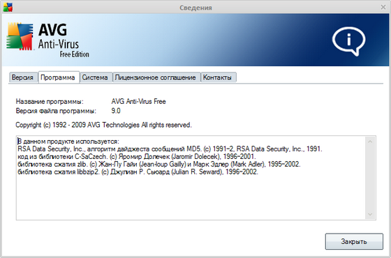 Скачать программу AVG Anti-Virus Free 9.0.707 Build 1765 Rus (79,98 МБ):