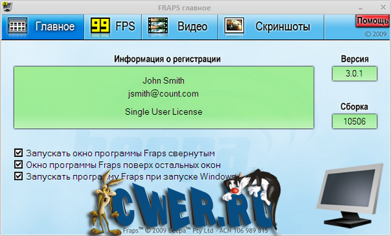 Скачать программу Fraps 3.0.1 Build 10506 Rus (1 МБ):