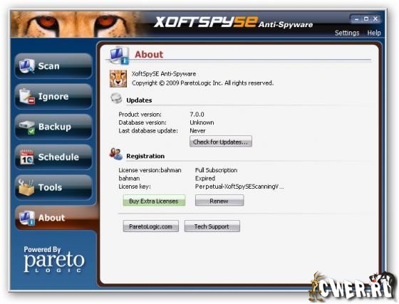 XoftSpySE Anti-Spyware не только находит разнообразные вредоносные модули, но и предоставляет исчерпывающую информацию о каждом из них. Присутствует возможность работы по расписанию. В XoftSpySE одна из самых больших баз данных: около 300000 определений.