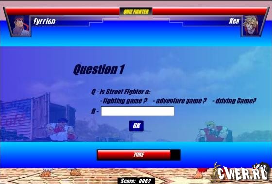 Викторина в которой вам предстоит отвечать на вопросы на тему файтинга, если ответ верен - ваш персонаж произвёдёт атаку на противника, если нет - противник атакует вашего персонажа.