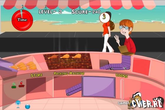 Помогите Фраю обслужить клиентов, помогая ему приготовить жареные куриные ножки до окончания времени.