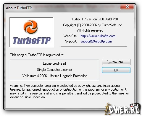 Скачать программу TurboFTP 6.00 Build 750 (6,16 МБ):