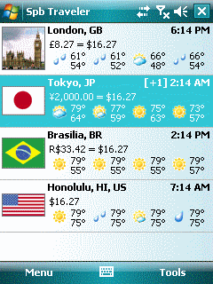 Spb Weather — это мощное средство для скачивания и просмотра на КПК прогнозов погоды, выполненное в виде встраиваемого модуля экрана «Сегодня». Вы можете выбирать различные режимы просмотра, менять интерфейс программы с помощью различных скинов и даже добавлять собственные погодные ресурсы! Пользователи программы Spb Pocket Plus версии 2.5 и выше могут интегрировать программу Spb Weather в экранный модуль программы Spb Pocket Plus в виде отдельной закладки для более рационального использования свободного пространства на экране КПК.