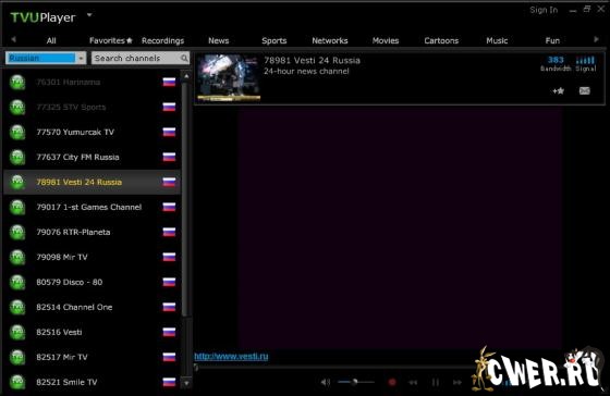 TVUPlayer - программа для просмотра бесплатных Интернет-телеканалов сети TVU. TVUPlayer имеет простой и удобный интерфейс, позволяющий легко управлять просмотром большого числа качественных телеканалов. Для трансляции видео сеть TVU использует пиринговые технологии, что обеспечивает более надежную передачу данных по всему миру.