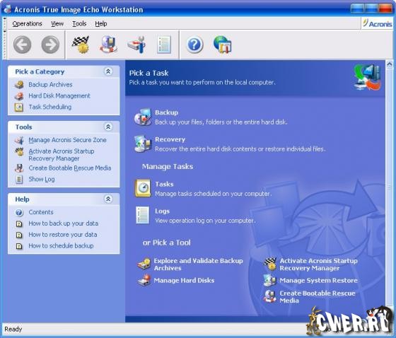 Acronis True Image Echo Workstation - профессиональное приложение для резервного копирования и аварийного восстановления данных на настольных и портативных компьютерах. Программа является идеальным решением для резервного копирования и восстановления данных на отдельном компьютере или по всей локальной сети, имеющим широкий ряд опций, таких как возможность резервного копирования систем целиком или отдельных файлов и папок, аварийное восстановление отдельных файлов и папок или диска целиком, удаленное управление задачами резервного копирования и восстановления данных, восстановление систем на различное оборудование, и многих других. Данное решение создает точный образ вашего настольного компьютера и позволяет создавать резервные копии важных файлов и папок. Позволяет производить полное восстановление системы в случае её сбоя, автоматическое восстановление данных на различном оборудовании или виртуальных машинах, а также восстанавливать отдельные файлы и папки за считанные минуты.