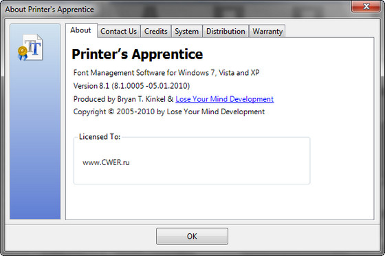 Printer's Apprentice представляет из себя потрясающий менеджер шрифтов для операционных систем Windows. Если вы являетесь художником, профессиональным публицистом или просто программным энтузиастом, и если у вас на компьютере имеется большое количество разнообразных шрифтов, то данная программа поможет вам в организации вашей коллекции. Программа поддерживает работу с шрифтами форматов TrueType, Adobe Type, и OpenType. С помощью этой утилиты вы сможете просматривать, сравнивать и выводить на печать ваши шрифты, установленные в системе. Также программа позволяет просматривать шрифты в указанных директориях, которые еще не установлены в систему, но хранятся на жестком диске - для этого в программу встроен браузер для просмотра шрифтов из указанного хранилища. Вы можете устанавливать и удалять шрифты намного быстрее, проще и удобнее с данной программой, чем это делаете через панель управления.