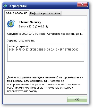 Скачать программу PC Tools Internet Security 2010 7.0.0.514 (42,17 МБ):