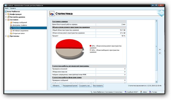 Kerio MailServer - это уникальный сервер для продуктивной совместной работы сотрудников вашей компании с использованием электронной почты, адресных книг, календарей и планировщиков задач общего доступа. Является защищенным, высокопроизводительным, мультидоменным почтовым сервером, работающим с любыми POP3 и IMAP клиентами. Для лучшей защиты от вредоносных программ всех типов, Kerio разработала технологию двойного сканирования: это позволяет проверять электронные письма интегрированным антивирусом от McAfee и любым внешним антивирусным движком по вашему выбору. Комбинация технологий защиты от спама, основанных на анализе контента и анализе отправителя позволяет пользователям программы существенно повысить коэффициент фильтрации нежелательной корреспонденции, защищает производительность труда сотрудников и снижает риски, связанные со спамом. Кроме того, интерфейс программы обладает многоязычной поддержкой, включая русский язык.