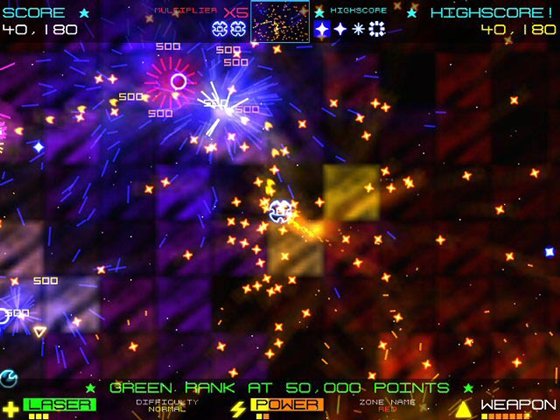 Насыщеный действием мини-екшн, в котором каждую секунду нужно быть начеку, в игре идет постоянное движение и огромнейшее количество графики в виде всплесков импульсов, взрывов, феерверков. В игре пять сложностей и много зон, для противостояния.