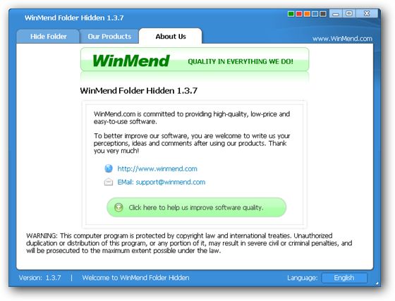 Скачать программу WinMend Folder Hidden 1.3.7 (1,67 МБ):
