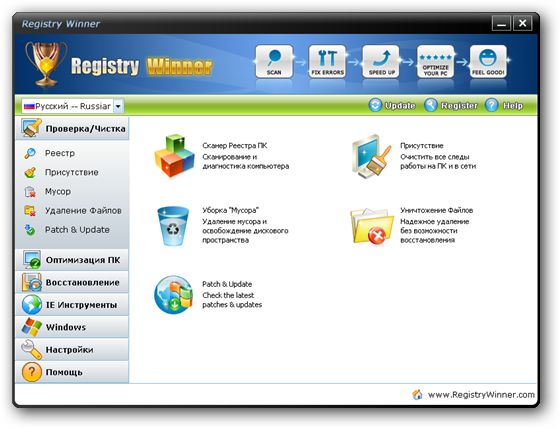 Registry Winner - программа для очистки системного реестра, которая позволяет находить и исправлять ошибки, повышая производительность системы. После обнаружения проблем, программа предоставит вам профессиональное и высоко-эффективное решение для восстановления работоспособности вашего компьютера. При постоянном обслуживании системы с помощью этой утилиты вы будете иметь упорядоченный системный реестр и система соответственно будет работать более стабильно.