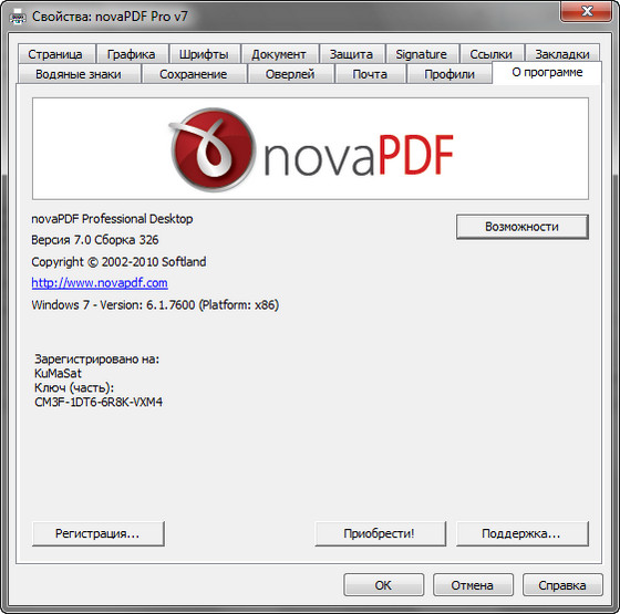 Скачать программу novaPDF Professional 7.0 Build 326 (6,28 МБ):