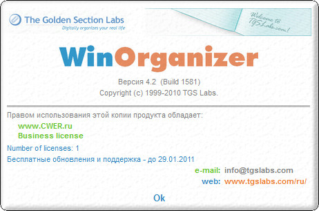 Скачать программу WinOrganizer 4.2 Build 1581 (6,62 МБ):