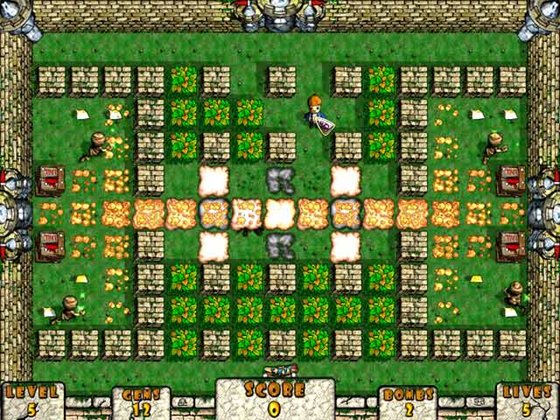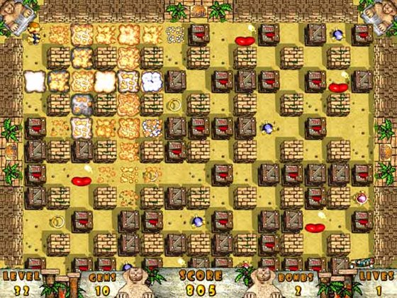 В этой красочной бродилке вам предстоит помочь двум симпатичным малышам, которые сражаются с монстрами при помощи взрывчатки. Выполнить эту миссию будет непросто — ожившие мумии, роботы-саперы и прочие злодеи перекопали всю округу. Они превратили прекрасные поля и долины в затейливые лабиринты, из которых есть только один выход. Чтобы открыть его — нужно собрать все драгоценности, разбросанные по уровню.