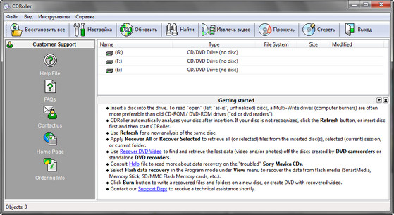 CDRoller - программный комплекс для восстановления, копирования и тестирования компакт-дисков. С появлением оптических носителей мы получили возможность сохранять огромные массивы данных на, казалось бы, надежных CD- и DVD-дисках. Но на самом деле не такие уж они безупречные: тривиальная царапина может сделать невозможным доступ ко всему содержимому. Впрочем, восстановить львиную долю файлов поможет утилита CDRoller. Она позволяет "извлекать" файлы с нечитаемых дисков, создавать локальные копии CD- и DVD-архивов и отыскивать нужный файл, не помещая носитель в дисковод, очищать перезаписываемые диски и записывать данные, а также выполнять множество других операций.