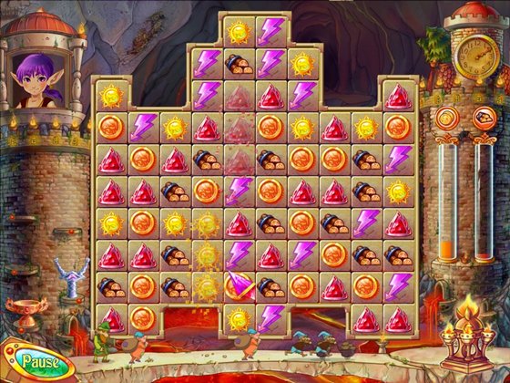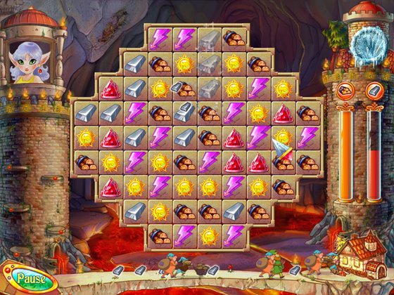 Отличная игра порадует вас оригинальной механикой из серии «три в ряд». Одной из особенностей игры является возможность выбора одежды и специализации вашего героя. Собирайте ресурсы на постройку очередного здания, отстраивайте город гномов. В этом вам помогут различные бонусы и подсказки. Ищите в пещерах утерянные магические артефакты в уровнях, сделанных в жанре «я ищу» и помогите гномам выбраться из зловещей пещеры на поверхность.