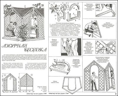 Библиотечка "Мастер на все руки" - это приложение к журналу "Моделист-конструктор". В каждом выпуске собраны идеи на схожие темы, как, например, в этом номере - ажурная беседка, передвижной мангал, рыбацкие помощники, баня на привале, велосипед-тандем и другие не менее интересные.