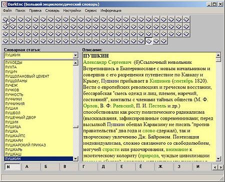 Электронная мультитематическая энциклопедия даст развернутый ответ на абсолютно любой вопрос, независимо от области знаний. Больше нет необходимости копить средства на многотомные словари и энциклопедии, а поиск нужной инфомации займет считанные секунды. Энциклопедия DarkEnc - это около 100 словарей, энциклопедий и справочников в одной программе.