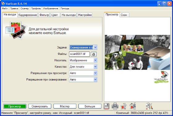 VueScan Pro - программа для работы со сканерами HP, Minolta, Nikon, Polaroid, Epson, Canon и другими. Может работать с внутренней глубиной цвета. VueScan поддерживает автоматическую и ручную настройку большинства параметров и пакетный режим сканирования. Поддерживается более 500 моделей сканеров с определенным перевесом в сторону слайд-сканеров — Nikon, Minolta, Polaroid, Microtek, Epson. Предусмотрено автоматическое удаление дефектов изображения за счет канала инфракрасного сканирования и многопроходное сканирование с последующим усреднением результата — для подавления собственных шумов сканера. Имеются фильтры подавления зерна, нерезкого маскирования и удаления паразитного оттенка оригинала. Есть средства ручной корректировки динамического диапазона и градационной характеристики (независимо по каналам R, G, B).