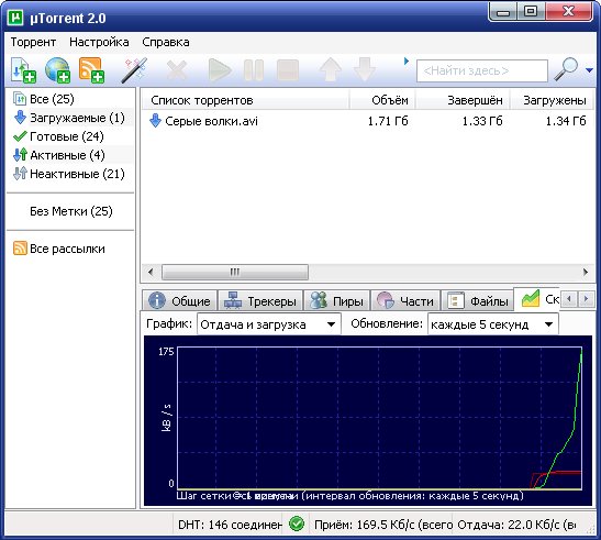 - uTorrent имеет возможность задавать приоритет трафика и регулировать скорость;