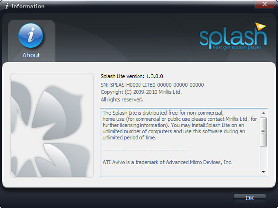 Новинка от компании Mirillis, медиаплеер Splash, оптимизированный для проигрывания видео в высоком разрешении (High Definition AVC/H.264) и просмотра цифровых телевизионных каналов (DVB-T). Splash Player имеет встроенный кодек Mirillis AVC/H.264, который является собственной разработкой компании, и способен обеспечить высококачественное четкое и гладкое изображение в высоком разрешении. Плеер отличается стильным, удобным интерфейсом.