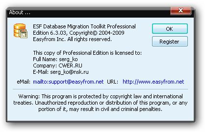 Скачать программу ESF Database Migration Toolkit Pro 6.3.03 (31,14 МБ):