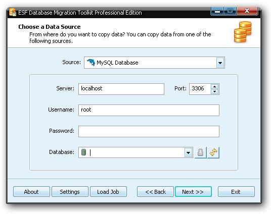 ESF Database Migration Toolkit – программа, позволяющая вам конвертировать различные форматы баз данных. Программа может связываться непосредственно с MySQL, SQL Server, PostgreSQL, Oracle, Access, Excel, Paradox, Lotus, dBase, Visual FoxPro, Text и другими форматами, конвертировать их друг в друга (Сервер SQL для MySQL, MySQL to Access и т.п.). Присутствует простой пошаговый мастер, который поможет вам связаться с целевой базой данных, выбрать таблицы, а затем конвертировать или копировать их в указанное место. Вы можете выбрать включение всех данных или просто скопировать структуру базы данных. Программа обеспечивает все необходимые опции для конвертирования, принимая во внимание все особенности как входящих, так и исходящих форматов баз данных.