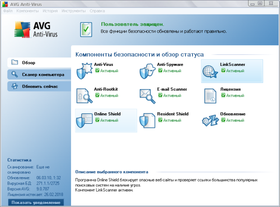 - LinkScanner Active Surf-Shield: защита в режиме реального времени от зараженных веб-страниц