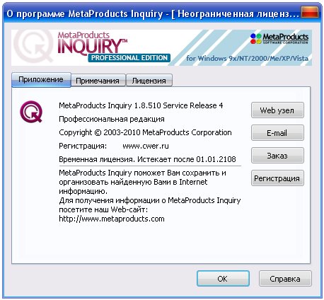 Скачать программу MetaProducts Inquiry Professional 1.8.510 SR4 (3,8 МБ):