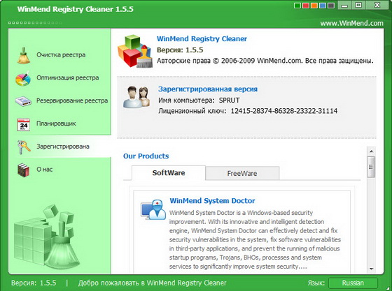 Скачать программу WinMend Registry Cleaner 1.5.5 (2,34 МБ):