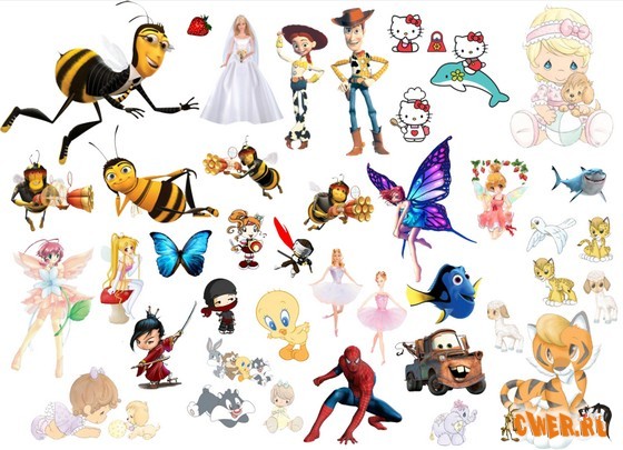 Скачать PSD-исходники мультипликационных персонажей (8,91 МБ):