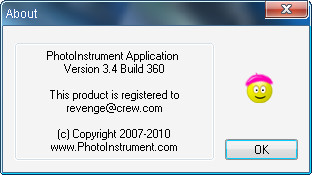 Действительно была только одна рабочая версия Photoinstrument 3.0 Build 304 Portable и то, постоянно в ней появлялось окно регистрации, но с уже введенными данными, просто надо было жать ок и все!