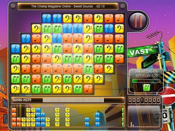 Увлекательная аркадная головоломка. Слушайте музыку, ловите ритм и складывайте блоки одного цвета. Чтобы пройти очередной уровень, вам необходимо собрать все фигуры, появившиеся на табло внизу экрана. Испытайте себя в режиме "аркада" и пройдите игру на скорость или займитесь неспешным решением задачек на логику. Покажите лучший результат, и ваше имя появится в списке чемпионов!