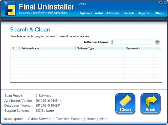 Final Uninstaller - программа, позволяющая очищать жесткий диск и системный реестр от мусора, оставшегося после удаления каких-либо программ. Программа использует высокоэффективный алгоритм обнаружения, который позволяет быстро просканировать систему и найти ненужные файлы и записи в системном реестре для каждой установленной программы на вашем компьютере. За несколько щелчков мыши программа просканирует ваш жесткий диск и реестр Windows, после чего предоставит вам список приложений, которые были неправильно деинсталлированы. После чего вы сможете выбрать приложения для последующего их полного удаления с компьютера. Программа имеет понятный пользовательский интерфейс и проста в использовании, поэтому подходит для любого пользователя.