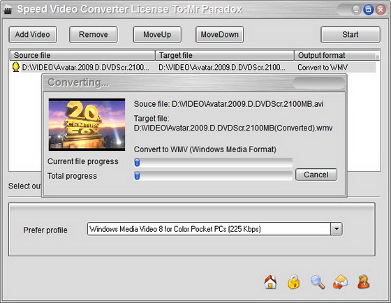 Маленький, высокоскоростной, с легким пользовательским интерфейсом, - это часто, самые сильные аргументы при выборе в пользу, того или иного видеоконвертора! Speed Video Converter быстрый конвертор видеоматериала, без какой либо "заморочки"! Необходимо загрузить файл и установить желаемые выходные параметры и все , процесс пошел! Speed Video Converter поддерживает различные видео форматы, такие как: AVI (Divx,xDiv), MPEG-4, MPEG (VCD,SVCD,DVD совместимые), WMV,ASF, Quick Time, VOB, DAT. Конвертирует сразу множество файлов (пакетное преобразование), для этого требуется всего один щелчок.