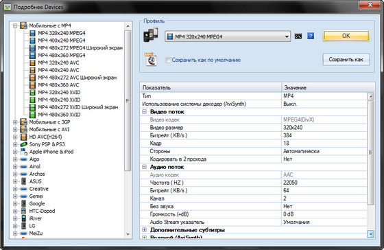 - MP4 файлы для форматов iPod/iPhone/PSP/BlackBerry