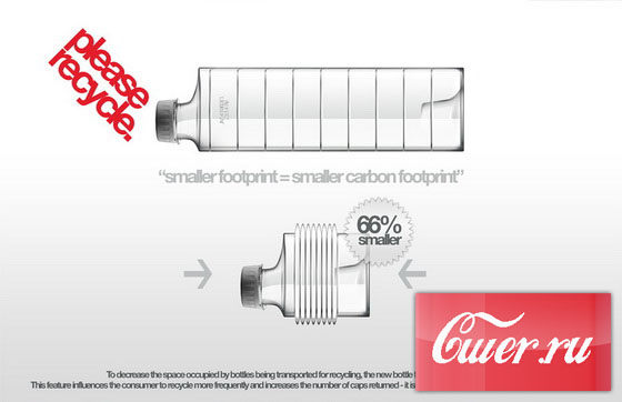 Другая интересная дизайнерская находка — бутылка имеет ребристость, которая позволяет после употребления напитка ее сжать как гармошку, так что при последующей утилизации она займет минимум места.
