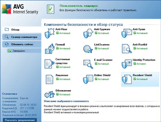 Скачать программу AVG Internet Security 9.0.800 Build 2779 (114.7 МБ):