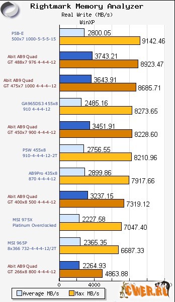 RightMark Memory Analyzer - набор тестов для точного измерения наиболее значимых "низкоуровневых" характеристик подсистемы CPU/чипсет/RAM...