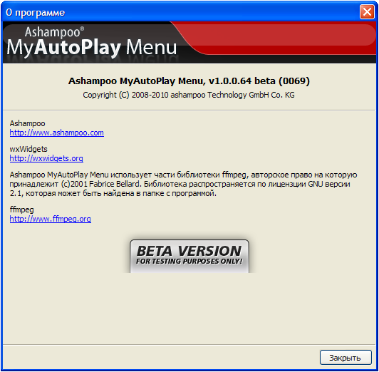Скачать программу Ashampoo MyAutoplay Menu v1.0.0.64 Beta (15,52 МБ):