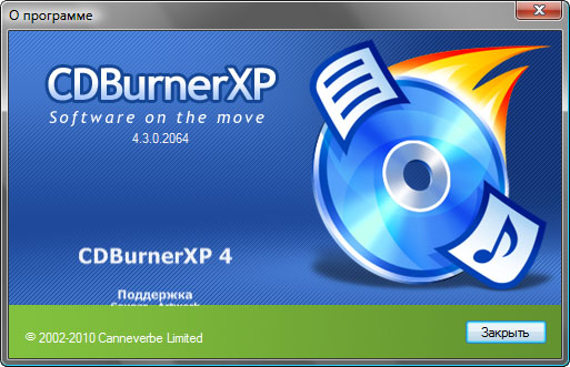 Скачать портативную программу CDBurnerXP 4.3.0.2064 (5,2 МБ):