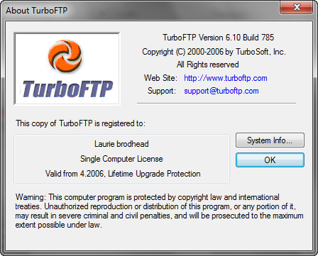 Скачать программу TurboFTP 6.10 Build 785 (6,21 МБ):