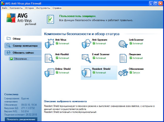 Скачать программу AVG Anti-Virus plus Firewall 9.0.814 Build 2810 (100,7 МБ):