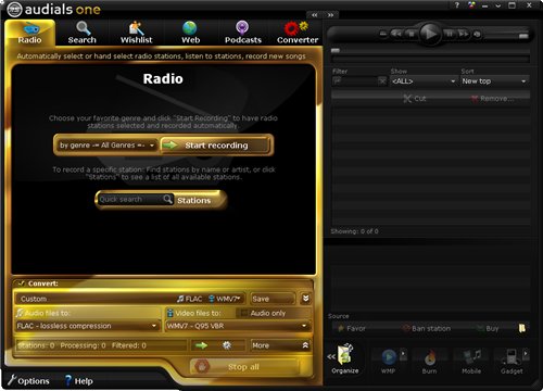 AudialsOne Platinum - это мощный комбайн для работы с видеосервисами и интернет-радио. Позволяет записывать фильмы которые вы смотрели по сети Интернет. Программа предоставляет вам возможность смотреть лучшие фильмы и Вам больше не придется беспокоиться о исчезновении их из интернет-магазинов видео. AudialsOne также может записывать клипы, захватывать простое и потоковое видео HD фильмов с видео-порталов и видео по запросу с веб-сайтов. Миллионы видео и аудио файлов теперь находятся в пределах вашей досягаемости.